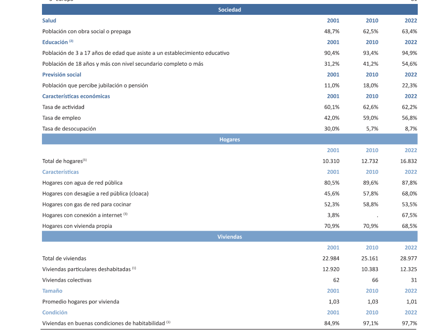 El único documento disponible hoy: dos páginas del INDEC con datos agregados del partido.